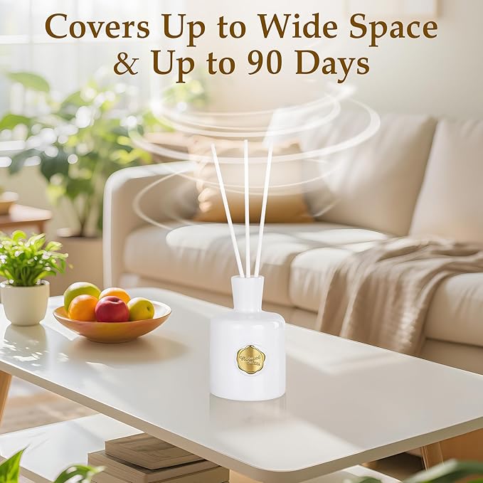 - Long-Lasting Scent Diffusion:Enjoy a continuous fragrance for up to 90 days. The reeds gradually absorb and release the oils, providing a steady scent throw that keeps your space fresh. Flip the reeds occasionally to renew the aroma