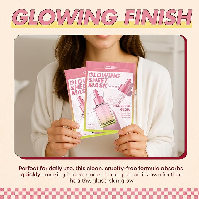 Collagen Face Mask – Dermatologist Tested, Anti-Aging, Korean Skin Care, Firms Hydrates Strengthens Barrier – Clean Beauty Vegan Sheet Mask for Dry Sensitive Skin – 5 Sheets