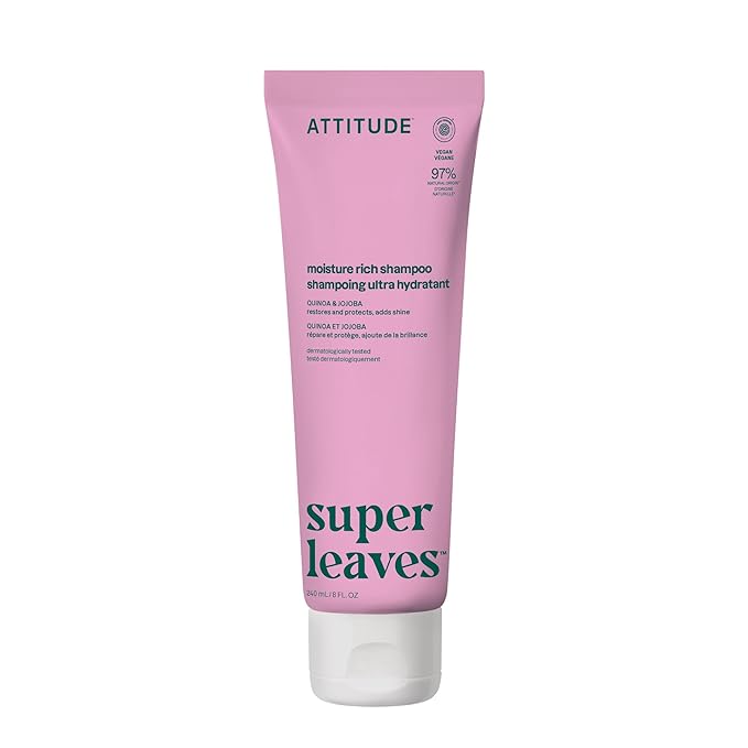 ATTITUDE Moisture Rich Hair Shampoo, EWG Verified, For Dry and Damaged Hair, Naturally Derived Ingredients, Vegan, Plant Based, Quinoa and Jojoba, 8 Fl Oz