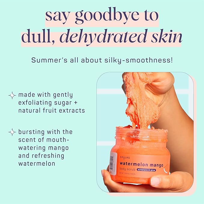 SpaLife Beauty Watermelon Mango Exfoliating Body Scrub 2 Pack – Sugar Scrub Glowing & Moisturized Skin – Fruit Extracts Natural Sugar Base – Watermelon & Mango Summer Scents – Safe for Sensitive Skin