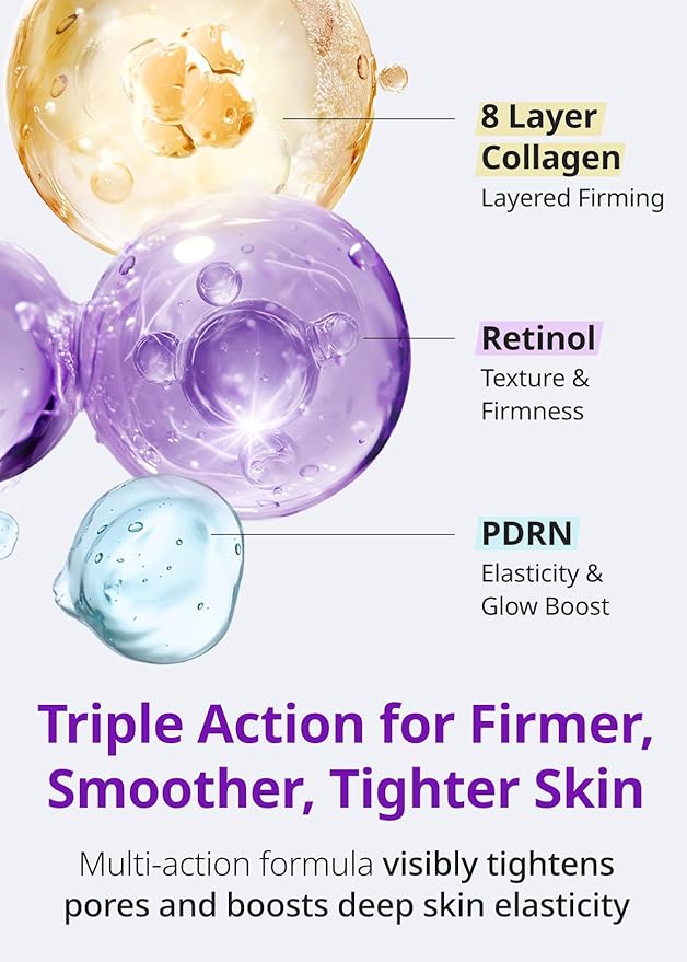 - PORE-TIGHTENING & FIRMING CARE: Enriched with 8 types of collagen and retinol, this formula visibly firms skin and tightens pores-targeting both elasiticity and pore desity for smoother, younger-looking skin