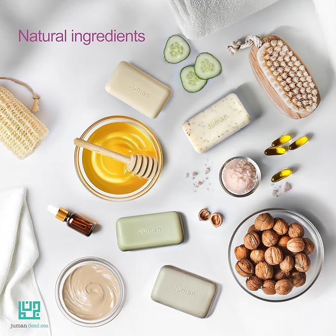 JUMAN Dead Sea Minerals Soap Bar | Variety Pack | Enriched in Vitamin E | Infused with Plant Extracts | SLS & Paraben Free | Soap for Acne, Dark spots, Eczema & Blackheads | From 4oz (Pack of 4)