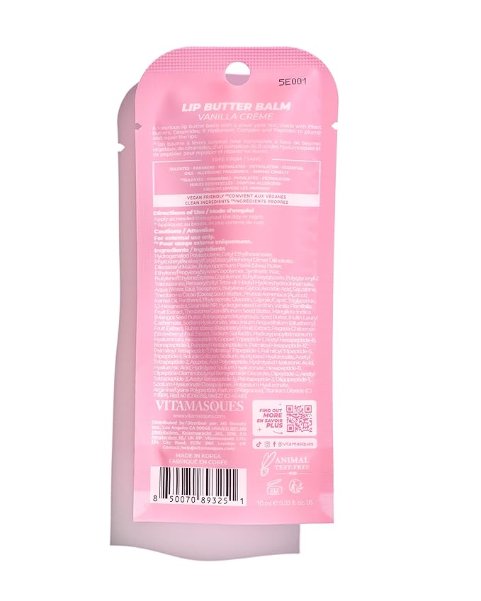 Vitamasques Lip Butter Balm Vanilla Creme, Korean Lip Balm - Peptide Lip Treatment - Lip Balm Hydrating - Light Tinted Lip balm - Made in Korea - 0.33 fl.oz