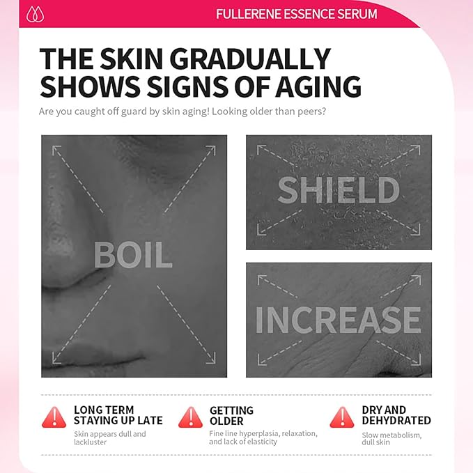 - Anti-Aging Support for Youthful Skin: Powered by Fullerene, a stable antioxidant ingredient, this serum helps neutralize external skin stressors that contribute to signs of aging. Its advanced formula supports visible firmness and resilience, promoting a smoother and more youthful complexion with continued use.