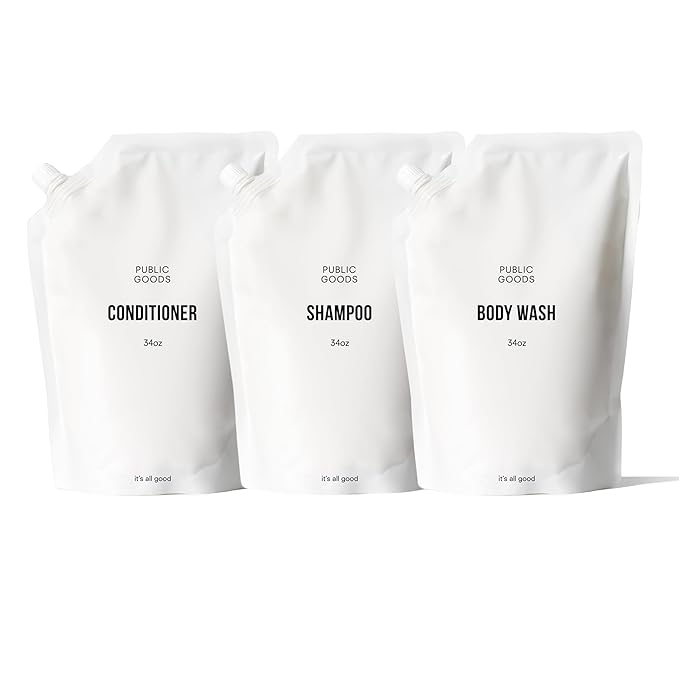 Public Goods Shower Essentials for Men and Women | Natural Shampoo, Conditioner & Body Wash | Made with Organic Essential Oils | Sulfate & Paraben Free | Vegan Friendly | 34 Fl Oz Refill
