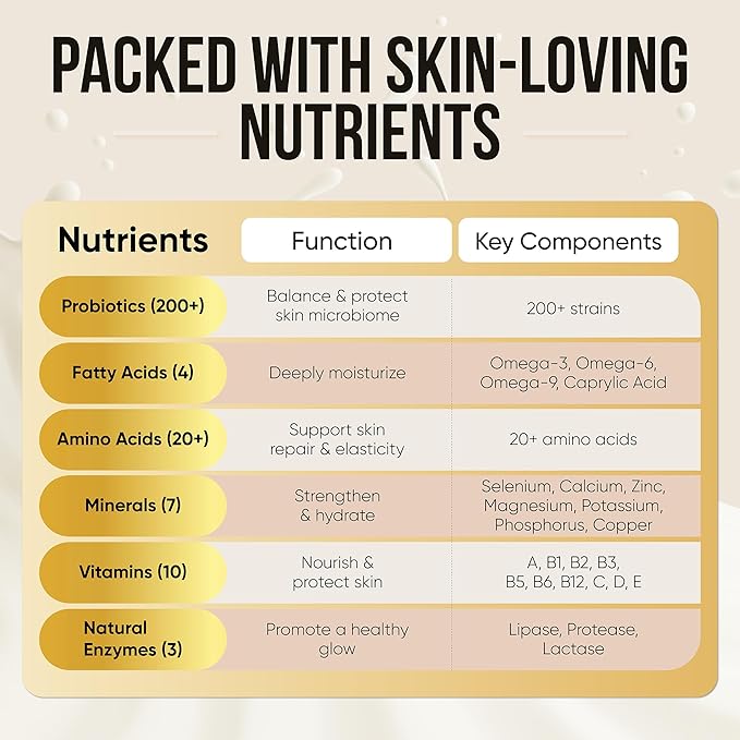 - Nutrient-Enriched Formula: Goat milk naturally contains skin-loving vitamins, proteins, and fatty acids that help nourish and condition your skin for lasting hydration and softness.