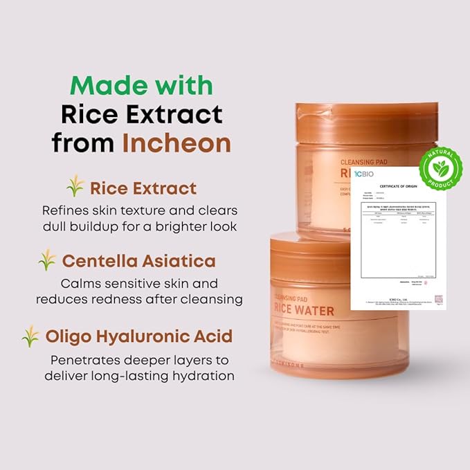 - RICE WATER FROM ICHEON Natural rice water extract supports pore care and mild exfoliation, leaving skin smoother, softer, and perfectly balanced.
