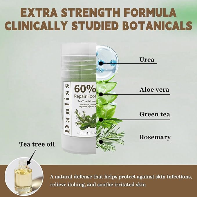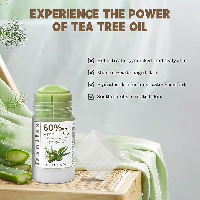 Urea Cream 60% for Feet, Maximum Strength Professional Cracked Heel Repair Balm Stick for Dry Foot Hand, Heals and Moisturizes for Healthy Feet with Tea Tree Oil, Aloe Vera and Rosemary 1.41 oz