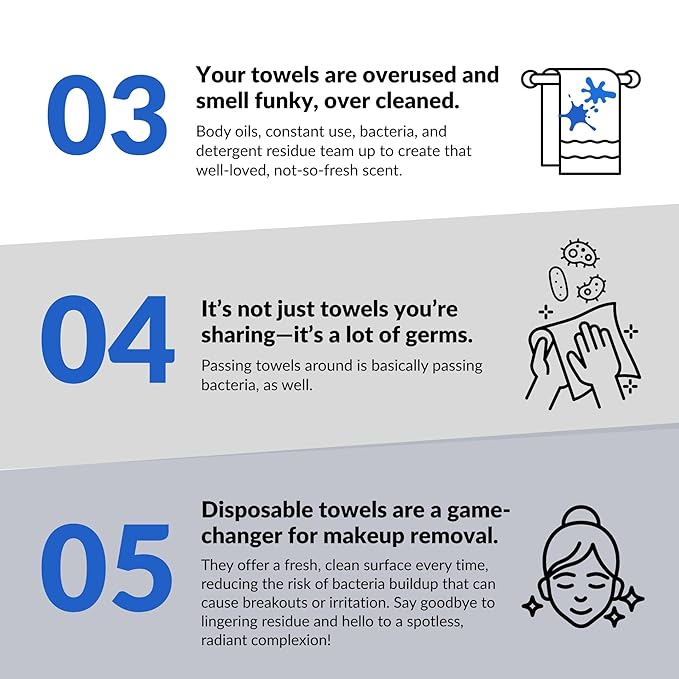 - CLEANER THAN REGULAR TOWELS – Fresh, single-use design helps reduce breakouts and irritation by eliminating dirt, and oil buildup