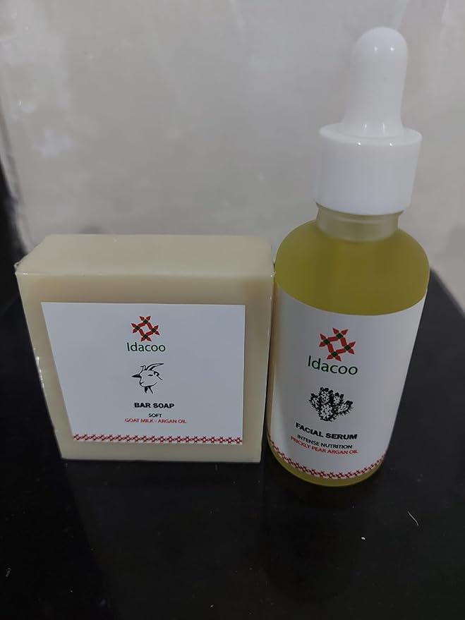 - NATURAL INGREDIENTS: Luxurious skincare set featuring goat milk and argan oil bar soap paired with a nourishing facial serum containing prickly pear oil