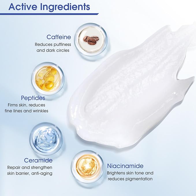 - 【Gentle & Easily Absorbed】 The under eye cream is smooth and light, non-greasy, and quickly penetrates into the skin. It is absorbed by the skin in a few seconds after patting, leaving the skin free of burden and naturally refreshed. Suitable for all kind skin types, morning and night.