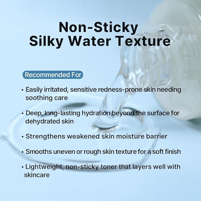 - Lightweight, pH 5.5 Level Formula : Balanced at skin’s natural pH 5.5 level for optimal comfort, this fast-absorbing watery toner hydrates sensitive skin without leaving any sticky residue.