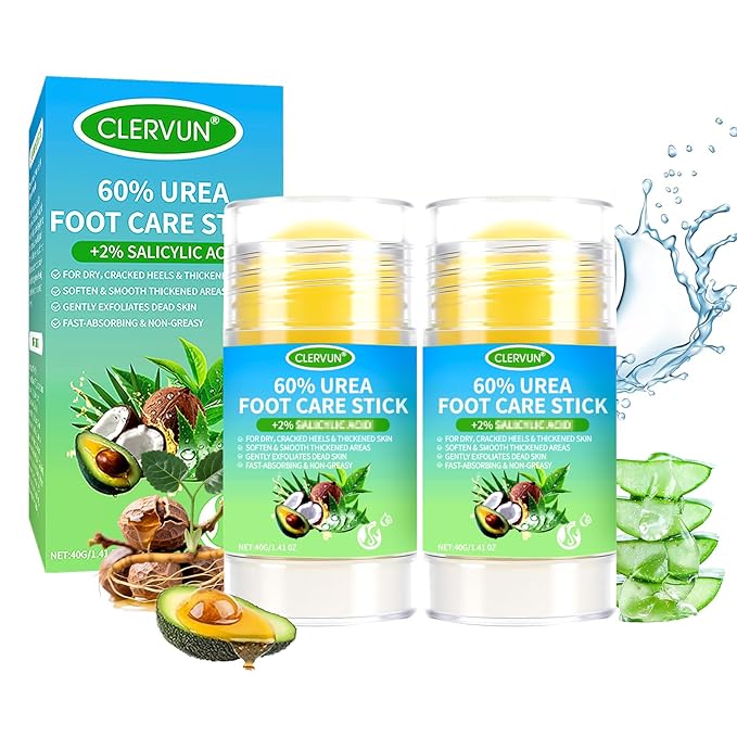 - [Portable Solid Stick Design]: Urea cream stick 60% plus 2% salicylic acid for feet maximum strength compared with traditional creams, urea cream stick 60% plus 2% salicylic acid doesn't need to be scooped out and is not sticky to hands. Foot lotion stick can be directly applied to areas prone to cracking such as heels and soles of feet, avoiding contamination of canned products