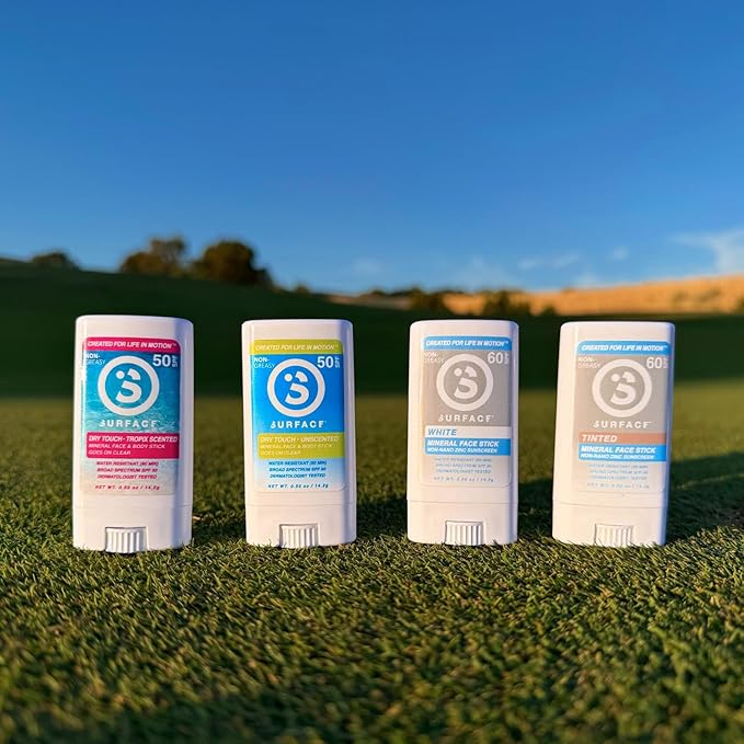 Surface Mineral Face Sunscreen Stick, Dry Touch SPF 50, Broad Spectrum UVA UVB Sun Protection for Kids and Adults, Travel Friendly, Water Resistant for 80 Minutes, Tropical Scent, 0.5oz