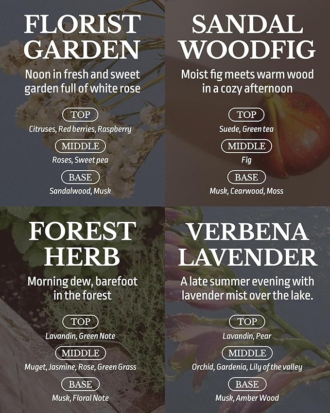 - AROMATHERAPY-INSPIRED SCENTS: Each fragrance offers a unique sensory experience - from calming lavender citrus to refreshing garden florals, forest herbs, and warm sandalwood fig. Transform your hair routine into a luxurious, spa-like experience.