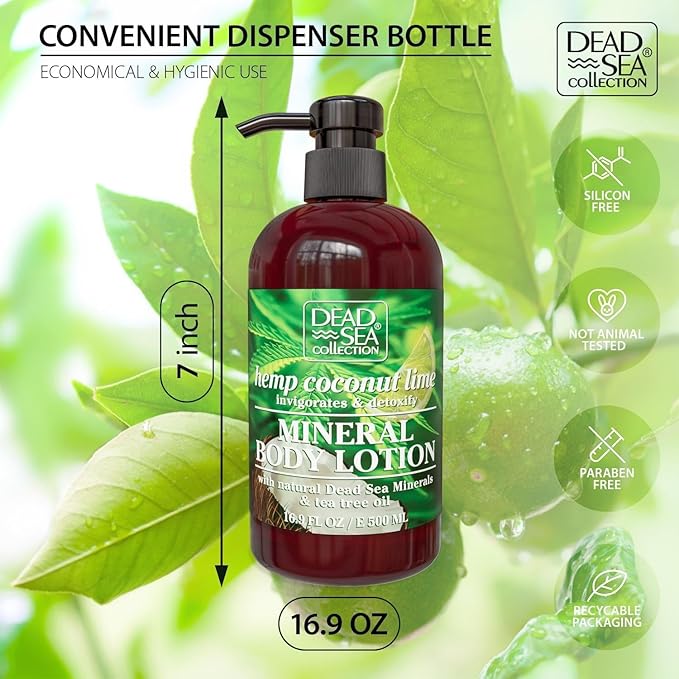 - Intensive Hydration - Dead Sea Collection hemp & coconut lime body lotion, a potent moisturizer for dry skin, offers deep hydration for lasting comfort.