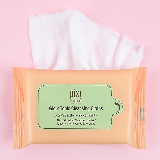 Pixi Beauty Glow Tonic Cleansing Cloths | Cleansing, Exfoliating, and Hydrating Disposable Face Towelettes | 3 Packs of 10 Face Wipes (30 Wipes Total)