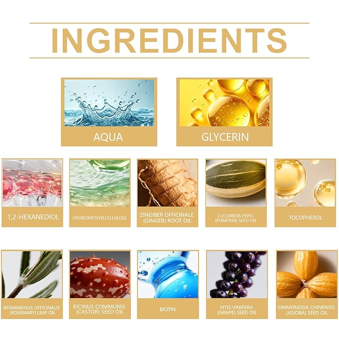 - 【5-IN-1 HAIR CARE SOLUTION】Combines the power of Rosemary, Castor, Biotin, and Ginger oils to deliver comprehensive hair benefits: strengthens hair from root to tip, deeply moisturizes, nourishes dry and damaged hair, supports scalp health, and improves daily manageability