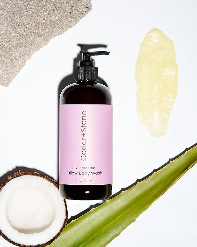 Cedar + Stone Tallow Body Wash – Liquid Tallow Soap & Shower Gel Formulated with USDA Organic Oils – Lavender & Lilac – Sulfate-Free Cleanser for Sensitive Skin – Made in USA, 16oz